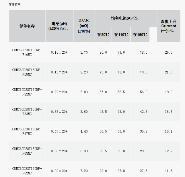 CDMC60D28 / T150可用于LED照明,ECU和其他汽車高可靠性應用程序(電感范圍:0.1歐~ 10歐)。