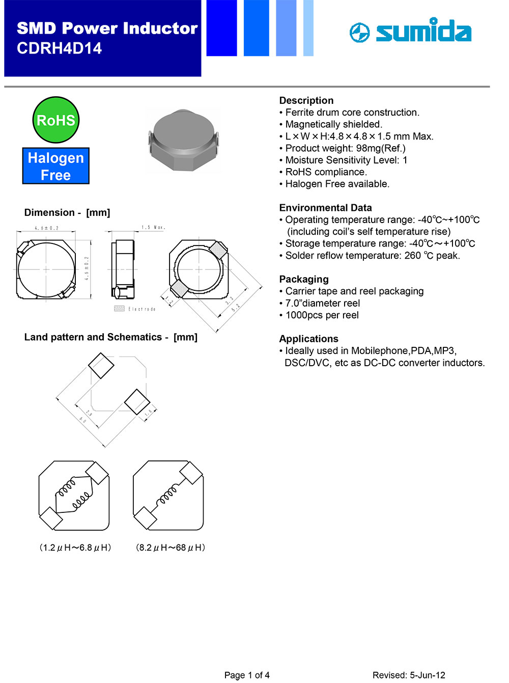 1.CDRH4D14磁屏蔽結(jié)構(gòu),薄型,