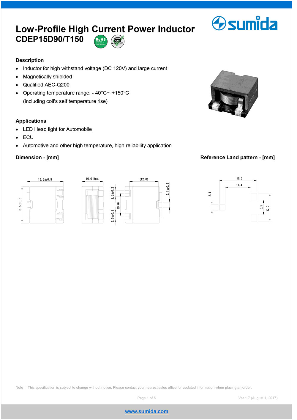 3.L*W*H--15.5*15.5*10.0mm 4.RoHS、AEC-Q200