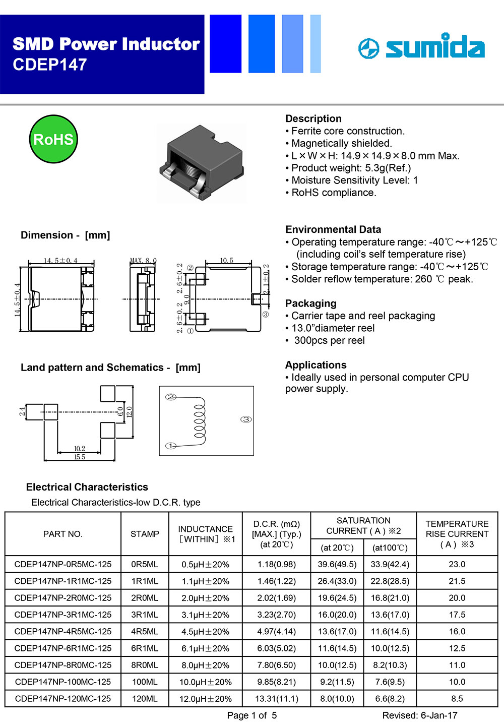 4.CDEP147廣泛應(yīng)用于各類大電流供電,如個人電腦CPU供電、交換機(jī)供電及其他需求大電流的DC-DC電源供電模塊,